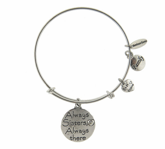 Always Sisters Always There Silver Expandable Stainless Steel Bracelet Sisters Gift Adjustable Wire Bracelet