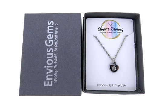3-D Heart Charm with Clear Crystal Stone Stainless Steel Pendant Necklace Love Pendant on a Stainless-Steel 16" or 18" Cable Chain