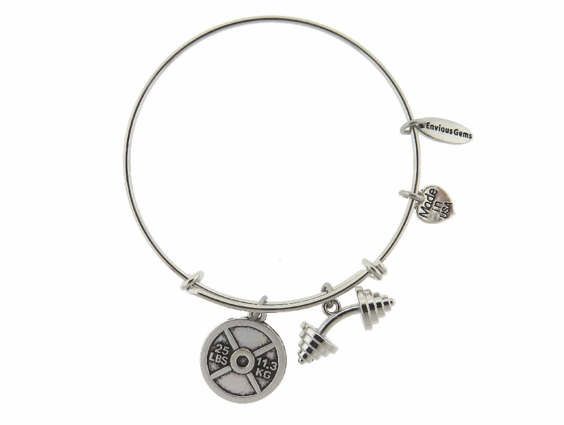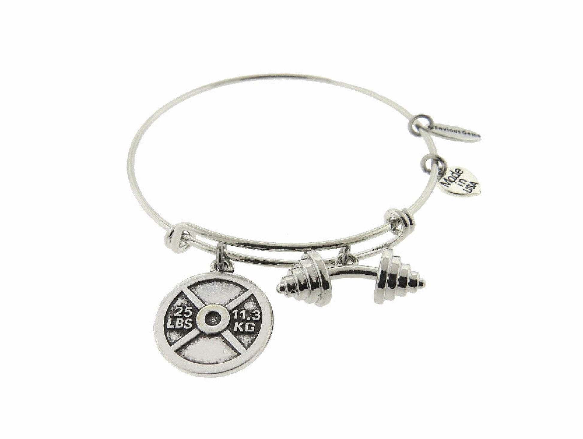 Barbell Weightlifter Silver Expandable Bracelet Women's Workout Gift Adjustable Bracelet