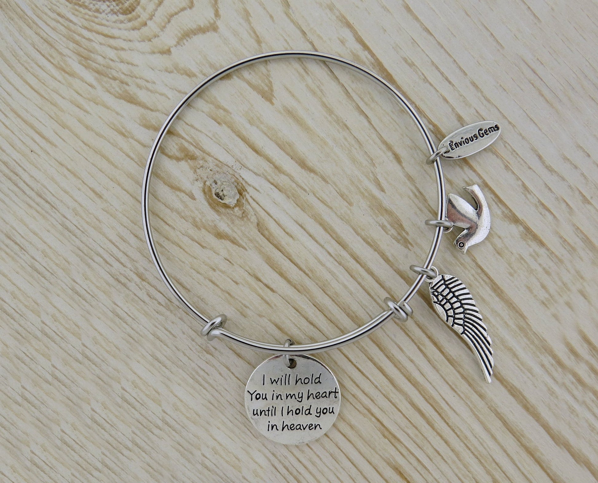 I Will Hold You in My Heart Until I Hold You in Heaven Angel Wing Memorial Spiritual Dove Stainless Steel Adjustable Bracelet