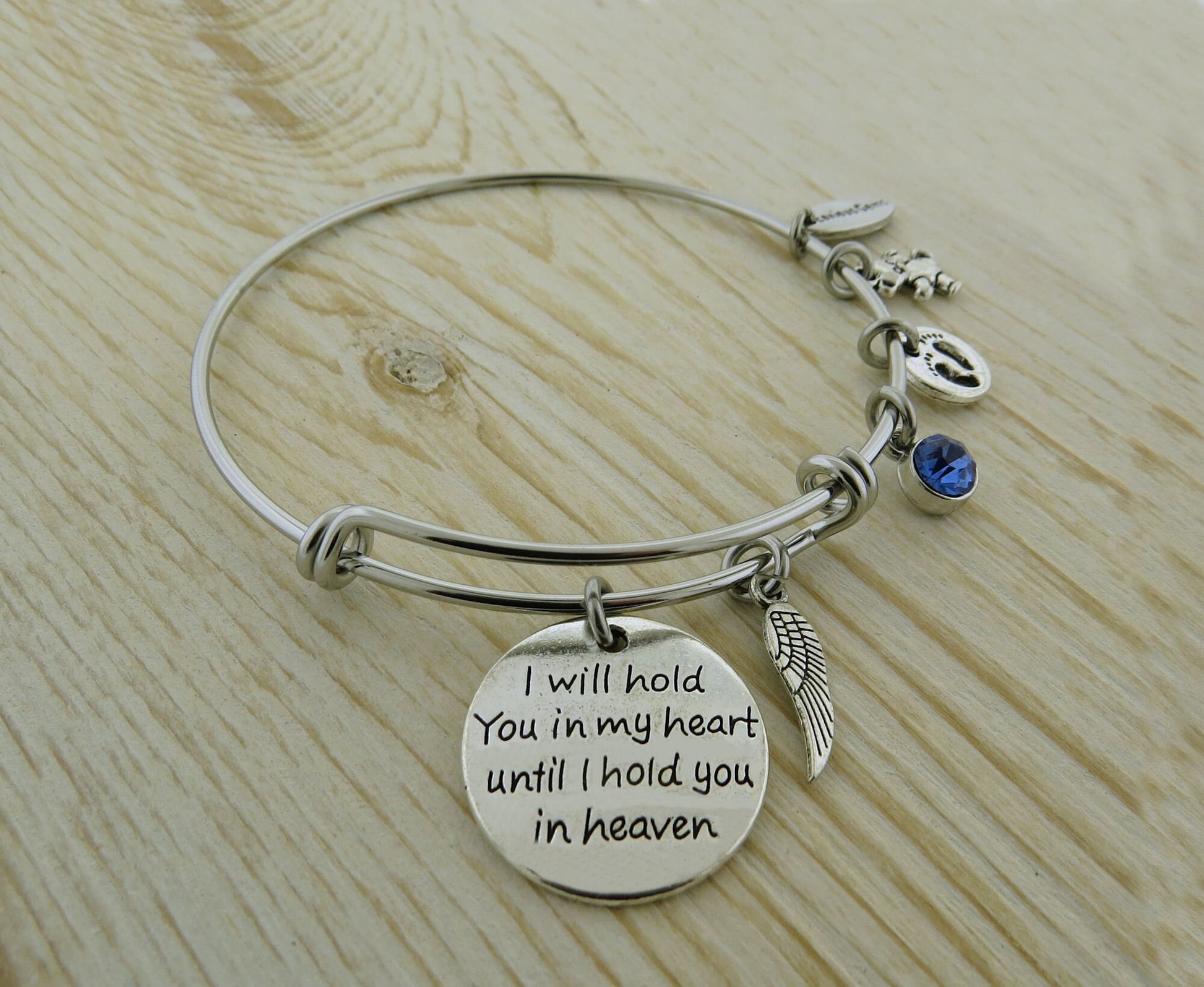 I Will Hold You in My Heart Until I Hold You in Heaven Angel Wing Memorial Loss of a Child Baby Girl Boy Birthstone Stainless Steel Bracelet