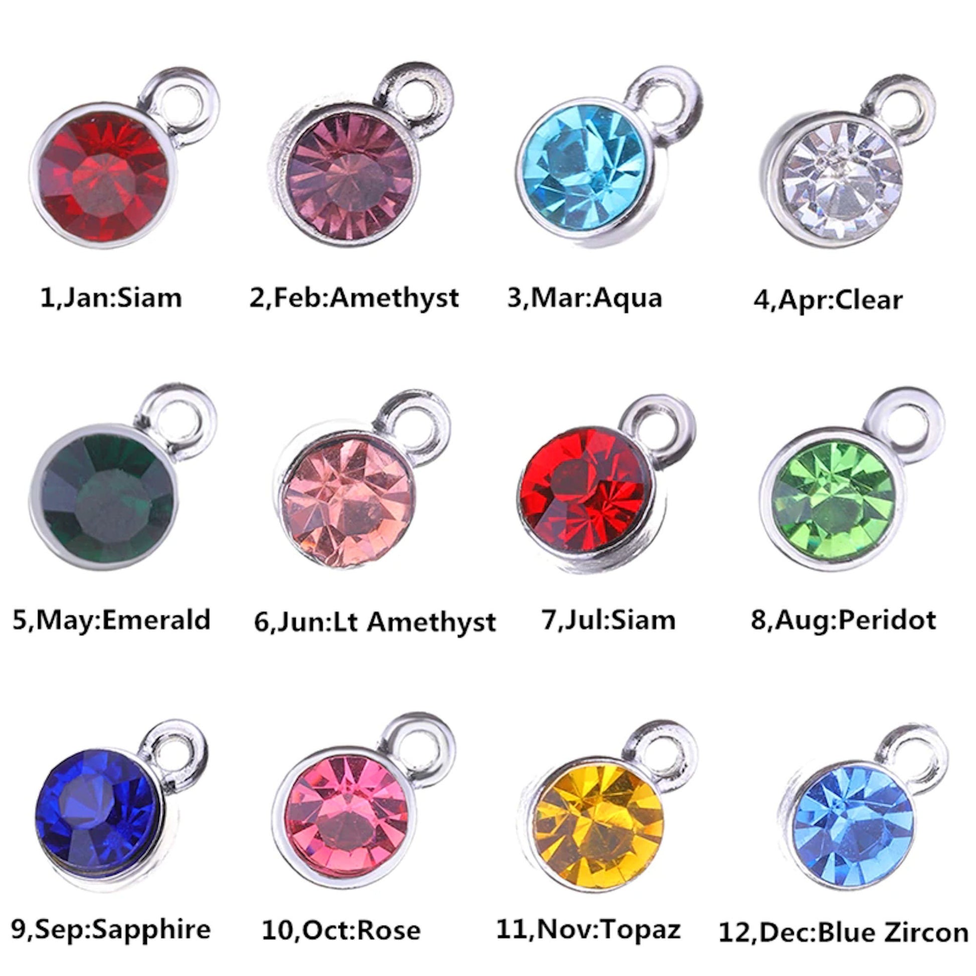 Followed by a small Angel Wing that is 19mm in length, then a 7mm Birthstone of your choice, a small Baby Footprint charm and Finished off with a Cute little Teddy Bear.