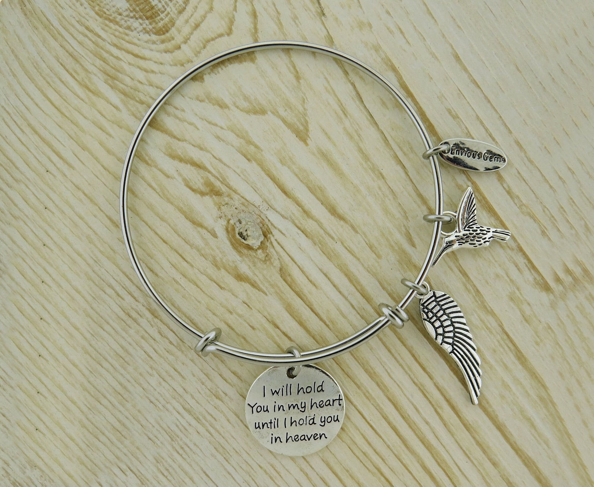 I Will Hold You in My Heart Until I Hold You in Heaven Angel Wing Memorial Spiritual Hummingbird Stainless Steel Adjustable Bracelet