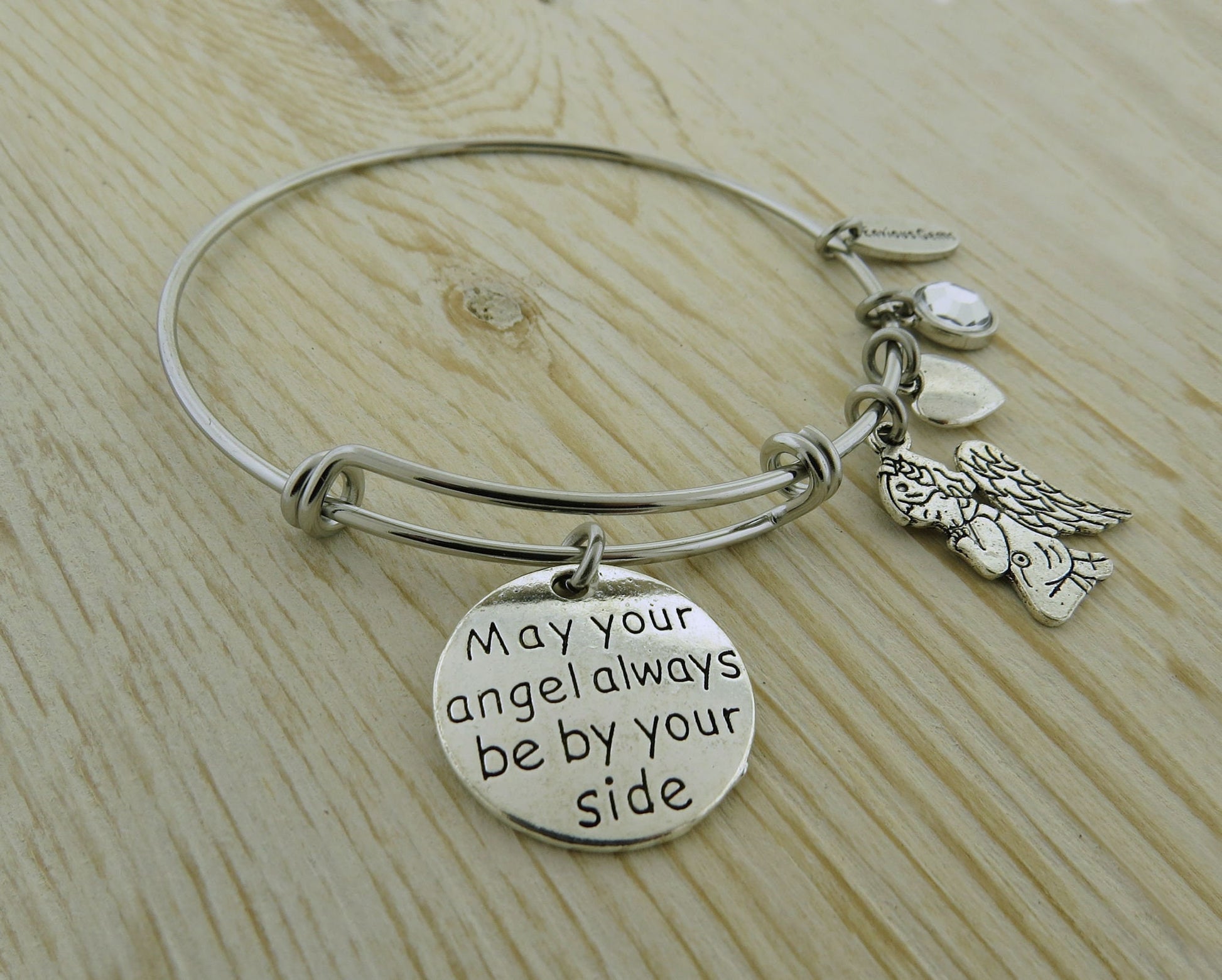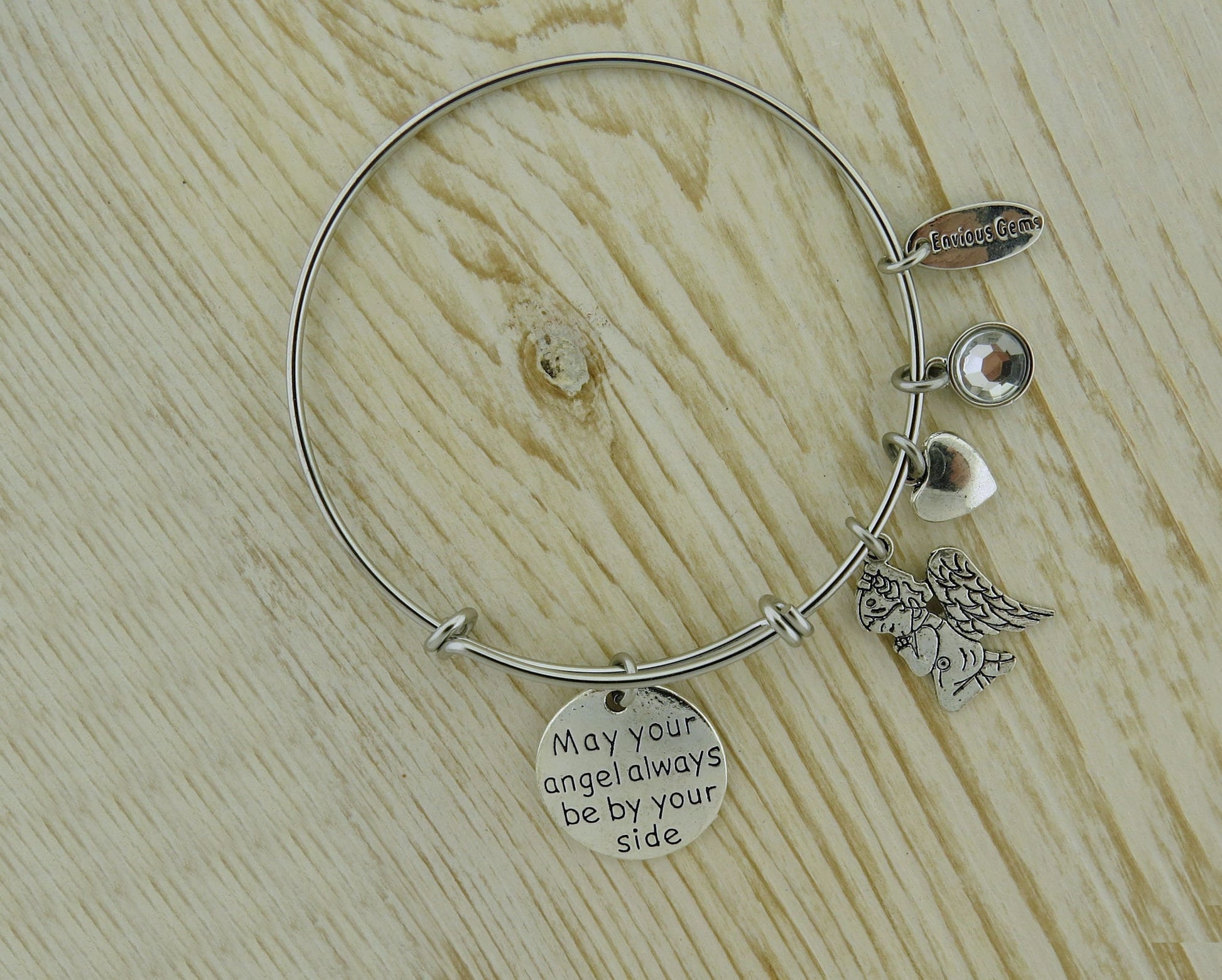 May Your Angel Always Be by Your Side Guardian Angel Say a Prayer Clear Crystal inspirational Stainless Steel Adjustable Bracelet