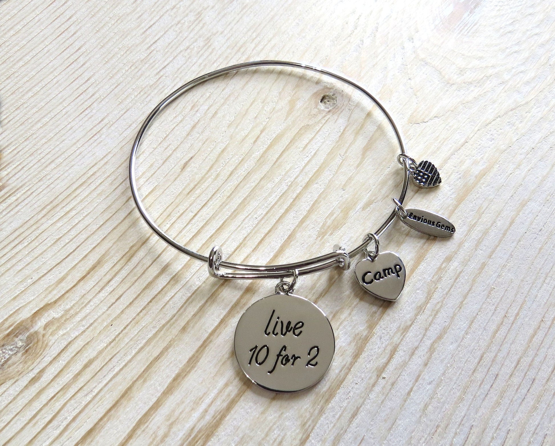 Overnight Camp Summer Camp "Live 10 for 2" Adjustable Bracelet Childrens Camp Bracelets Gold or Silver rhodium Plated.