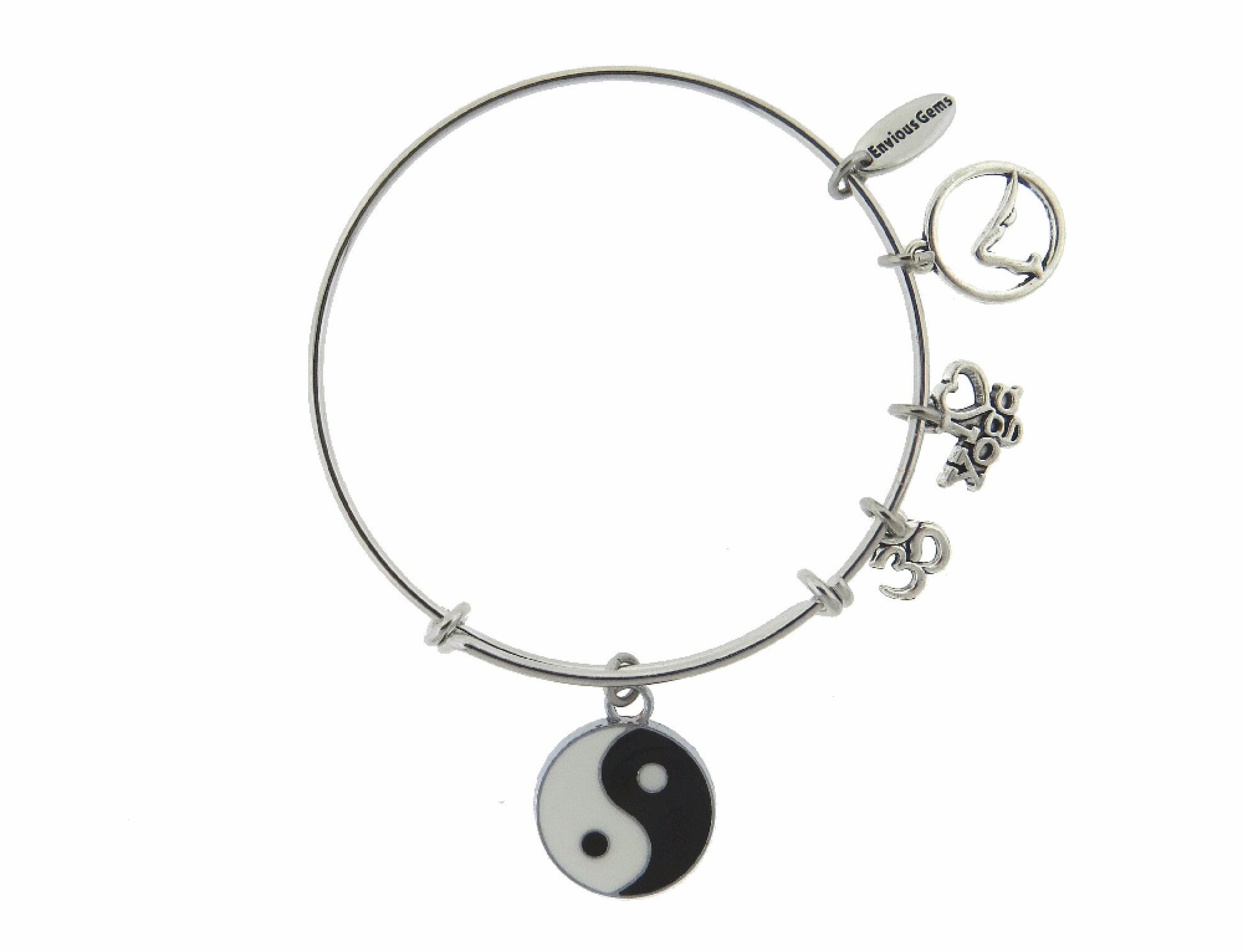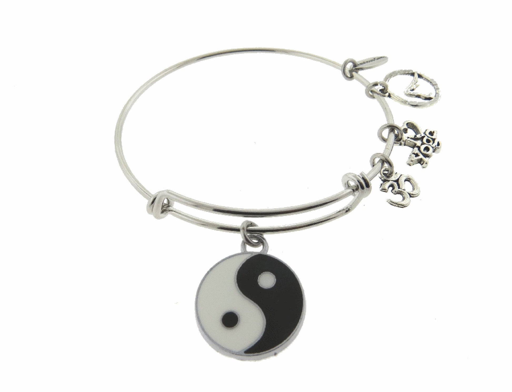 Yin Yang Silver Expandable Stainless Steel Bracelet OM Yoga Adjustable Bracelet