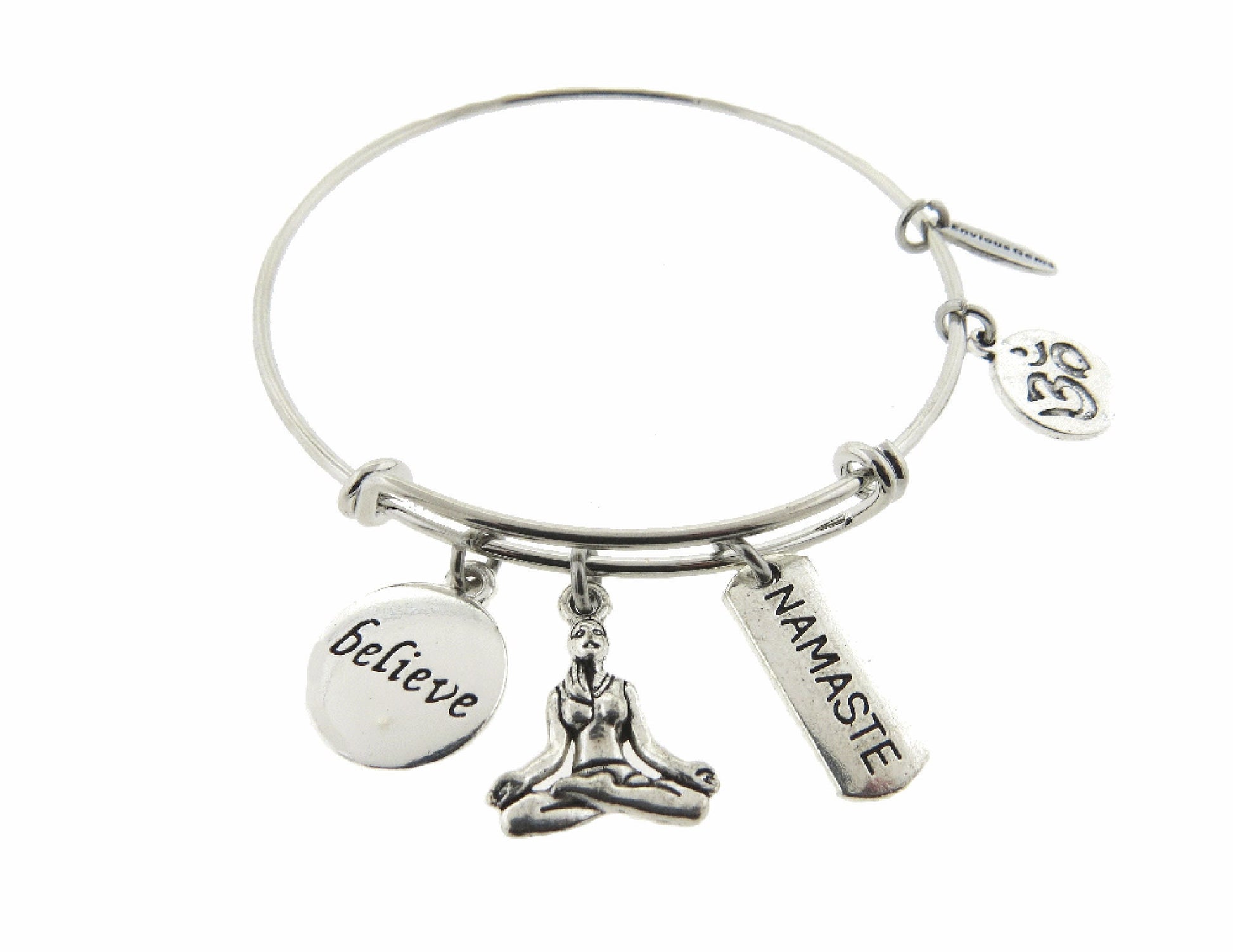 Yoga Believe Namaste Silver Expandable Stainless Steel Bracelet OM Adjustable Wire Bracelet
