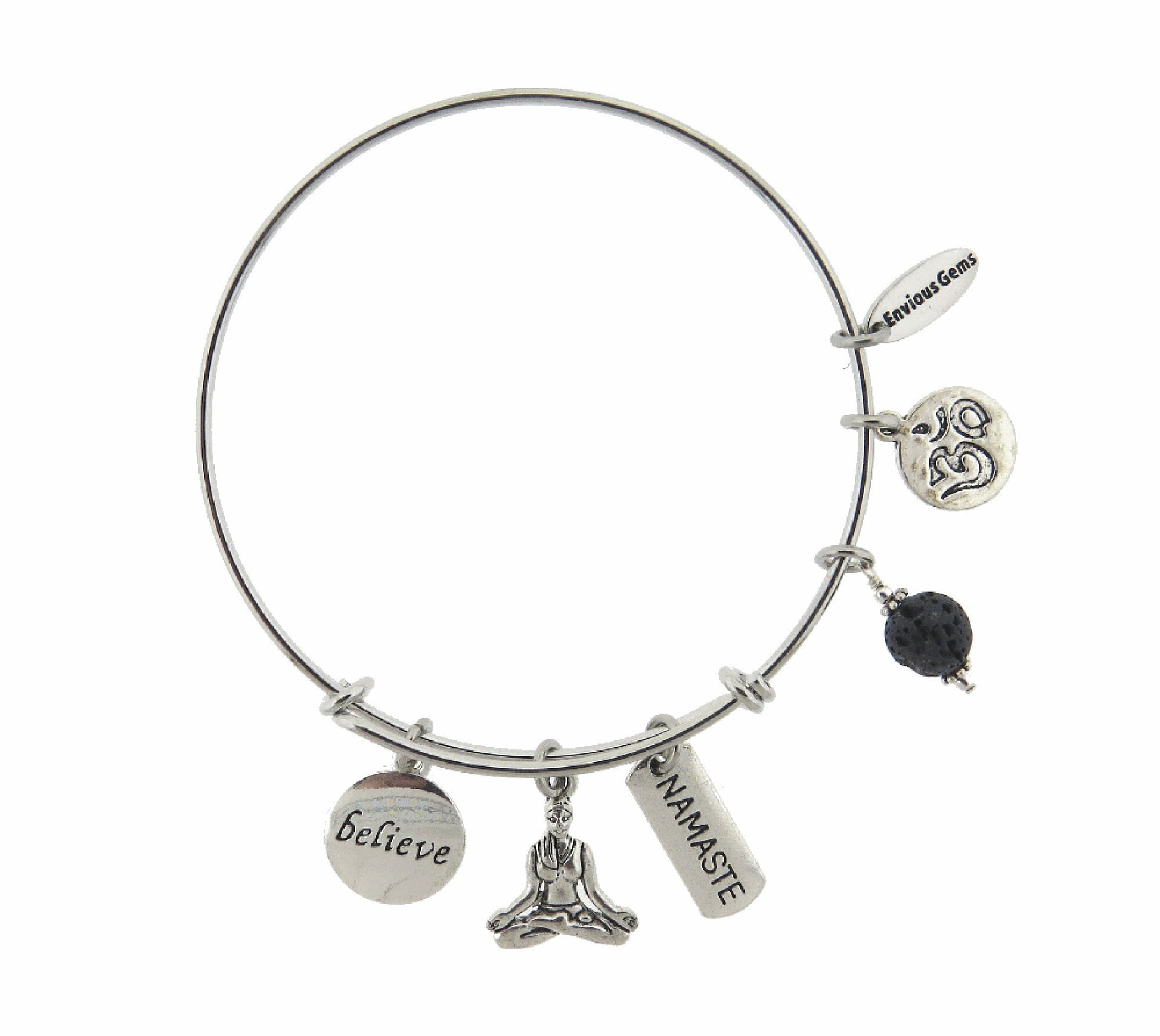 Yoga Believe Namaste with Black Lava Bead Diffuser Stainless Steel Bracelet Spiritual Adjustable Wire Bracelet